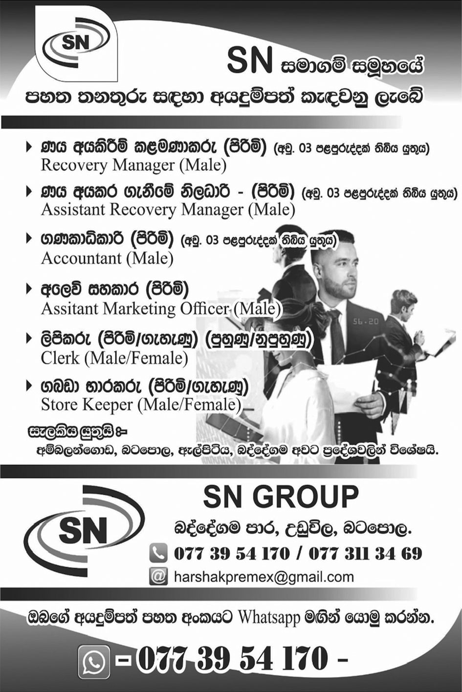 Come join our dynamic team at SN Group Company as a Recovery Manager! We are a leading institution in the industry, dedicated to providing top-notch services to our clients. As a Recovery Manager, you will be responsible for overseeing the recovery process for our company, ensuring that all outstanding debts are collected in a timely and efficient manner. You will work closely with our team of professionals to develop and implement effective strategies for debt recovery. The ideal candidate will have a strong background in debt collection, excellent communication and negotiation skills, and the ability to work well under pressure. This is a great opportunity to join a growing company and make a significant impact in the field of debt recovery. Apply now and become a part of our successful team at SN Group Company!